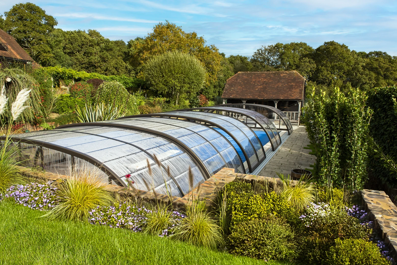 Bazén se zastřešením zároveň mění vnímání celé nemovitosti. Nejde o sezónní prvek, ale o funkční součást bydlení. Prostor, který je využitelný, chráněný a architektonicky sladěný s domem i zahradou. Kvalitní zastřešení nepoutá pozornost. Respektuje linie domu a působí samozřejmě – jako by tam patřilo od začátku.